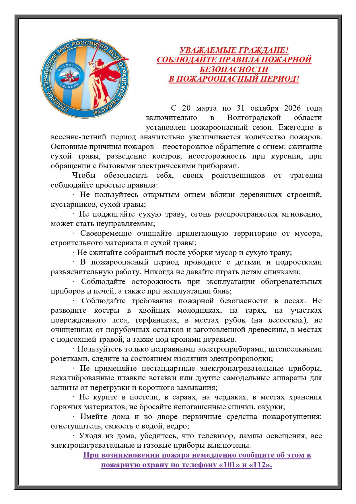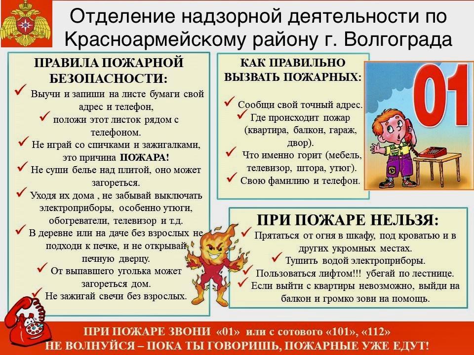 В целях минимизации рисков возникновения чрезвычайных ситуаций, связанных с пожарами, гибели и травматизма на них людей, в том числе детей, повышения уровня культуры безопасного поведения населения, предупреждения возникновения пожаров и гибели людей, а также в целях реализации плана профилактической работы "Жилье" на территории города-героя Волгограда МОУ Детский сад № 282 размещает агитационные материалы на нашем официальном сайте.